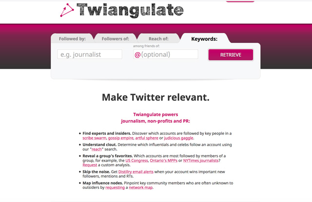Alongside the explosive growth of Twitter users is an equally stunning growth of applications you can use to manage Twitter. These can be good tools if you are covering a beat and want to monitor various conversations. One of the most useful aspects of Twitter for journalists is that it allows you to immerse yourself in the world of your beat by following other journalists, experts in the field, or organizations that are involved. To find people to follow, you can browse by interest, you can locate people that are in your social networks or search for related lists.