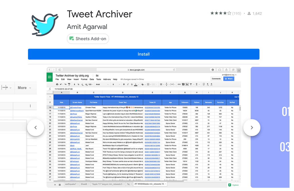 Search Twitter by keyword or hashtags and save matching tweets in a Google Spreadsheet automatically. Enter a search query, or an hashtag, and all matching tweets are automatically saved in the Google Sheet. You can write simple queries, use boolean search or include advanced Twitter search operators to create more complex queries. It polls twitter every hour and pulls all the matching tweets into the Google Spreadsheet.