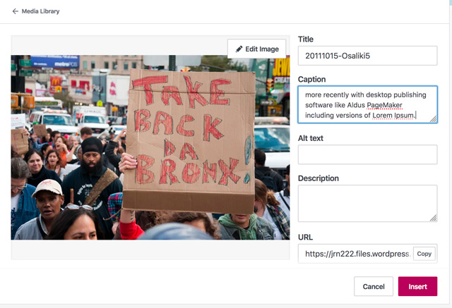 – You can then add a caption and insert into the post.