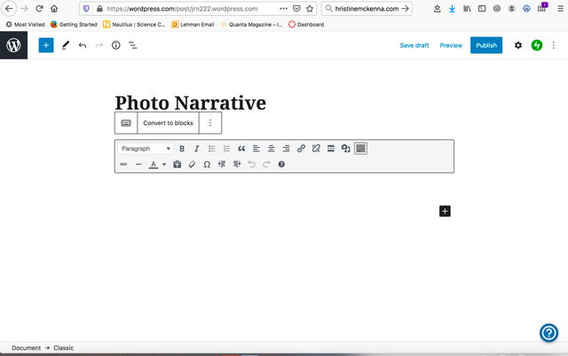 Note: you should be able to put the entire photo essay in this one block. If the tool bar ever disappears, just click within the block and it should reappear.