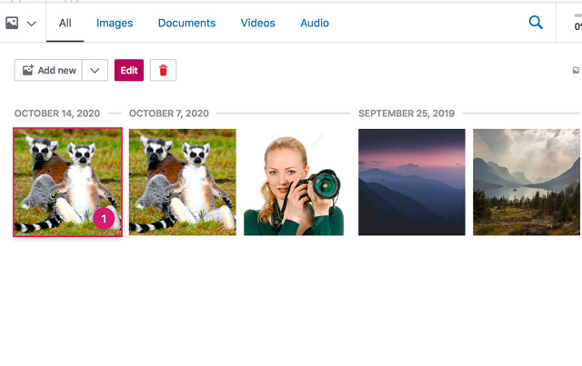 – Once uploaded, click on the image and a pink Edit button will show up. Click on it.
