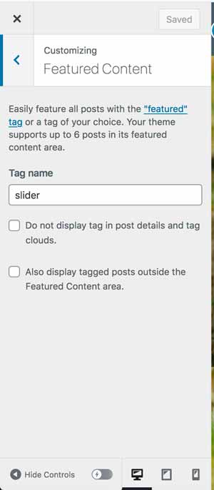 Some themes will have a slider up top on the home page where you can select certain content to appear. One way this is done is through tagging these posts with a key word. The key word can be whatever you want, you just have to indicate in the Customizer what that word is.