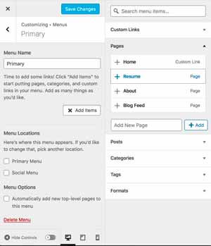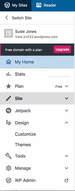 Under Design in the main menu is the Customize option. This is where you will make most of your design and other tweaks. It will vary depending on your theme.