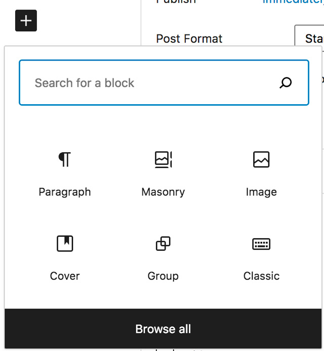 – Click on the black + and then click on the Browse button to open up all of the blocks.