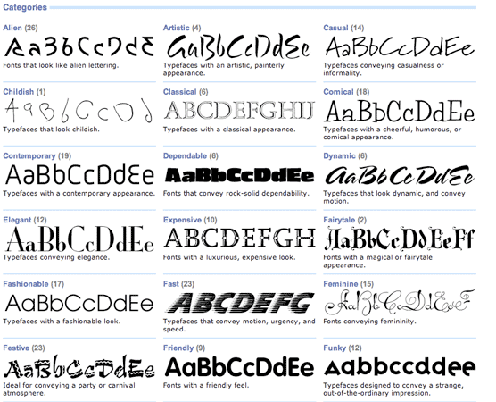 This chart illustrates some of the visual cues fonts can convey to readers. If you choose to go with a more stylized font, choose one that is in sync with your content and the tone of your story.