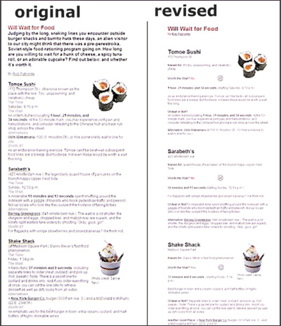 Designers should abide by a general principle: design should offer the readers consistency; content should offer variety. That is, it should be the content — packaged in a consistent design — that gives the site its flavor and uniqueness.