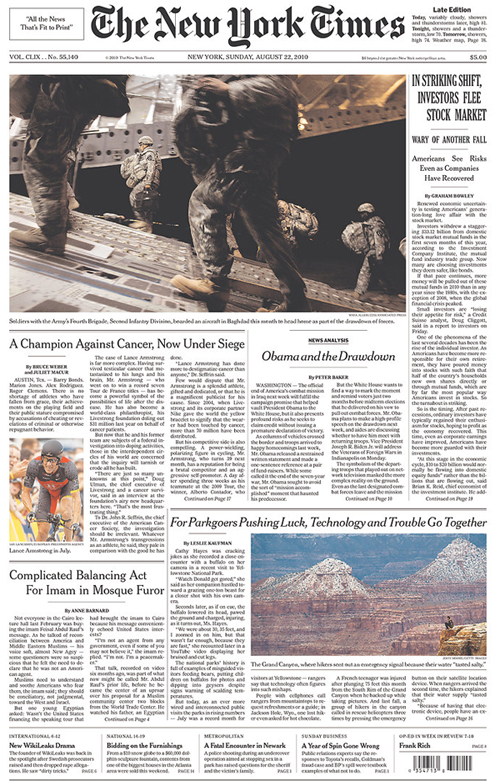 The print version of the NYT front page is primarily content, offering five section blurbs at the bottom. Online news is much more exploratory and interactive in nature. With over 100 choices on the home page of the nytimes.com, an individual user’s behavior will be unique and subjective.