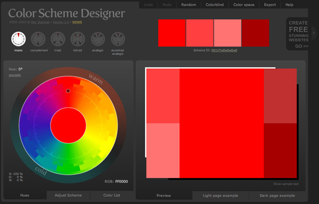 Using colors of the same hue. They may have different tints or shades depending upon how much white or black is added. Monochromatic color schemes are often the easiest on the eyes of all the color schemes. The gentle changes in tint and shade make the colors flow into one another better. Use this color scheme to make your site appear more fluid and collected.