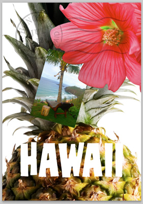 5) Click right below Hawaii and type Island Paradise. Click the commit edits button. Position the text using the move tool.