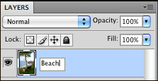 3) Double click on Beach.psd. This consists of only one layer — it does not have a white or colored background. Click on the layer 1 and rename it Beach.