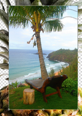 6) Make the flower visible and drag the beach photo so that its corner is tucked beneath.